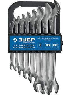 ЗУБР 8 шт, 6 - 24 мм, набор рожковых гаечных ключей, Профессионал (27011-H8)
