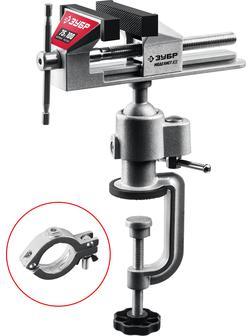 Профессиональный шарнирно-поворотный инструмент с ручным приводом для выполнения точных работ Преимущества Надёжное закрепление детали сложной формы под любым углом Губки со съемными нескользящими резиновыми накладками, позволяющими контролировать степень зажима, избегая при этом повреждения поверхности закрепляемой детал Канавки на подвижной губке обеспечивают удобство крепления круглых деталей Основание, закрепленное на шарнире, позволяет поворачивать корпус тисков под различными углами и фиксировать его в необходимом положении зажимными винтами Возможность быстрой замены корпуса тисков на зажим для дрели с помощью HEX- винта Основание корпуса тисков имеет резиновую прокладку (подошву), предохраняющую установочную поверхность от повреждений Быстрая и надежная установка тисков на столе осуществляется с помощью струбцины Эмалированный корпус и хромированное покрытие крепежных винтов из холоднокатанной стали обеспечивают длительный срок службы Корпус тисков представляет собой цельнолитую алюминиевую конструкцию Использование Для зажима различных предметов или их отдельных составных