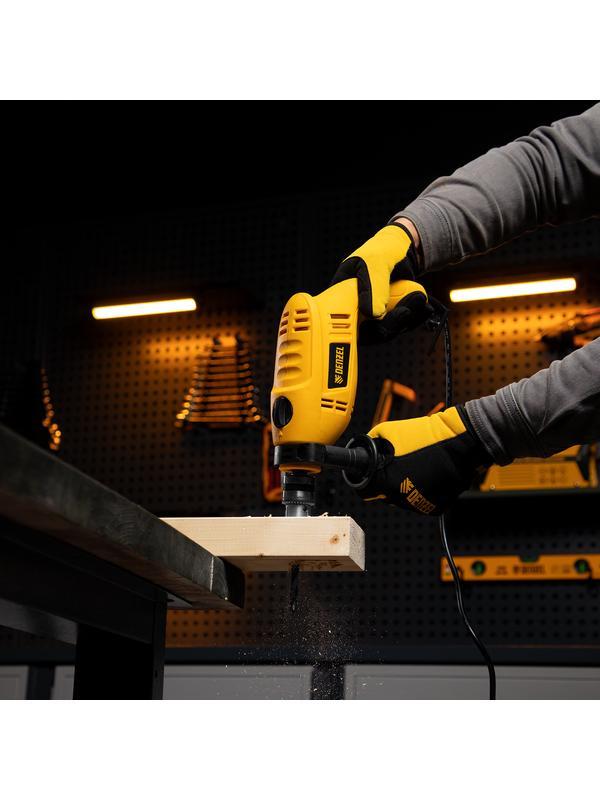 Дрель электрическая ударная - 1 шт, Ключ от патрона - 1 шт, Рукоятка боковая - 1 шт, Ограничитель глубины сверления - 1 шт, Комплект запасных угольных щеток - 1 шт, Руководство по эксплуатации с гарантийным талоном - 1 шт