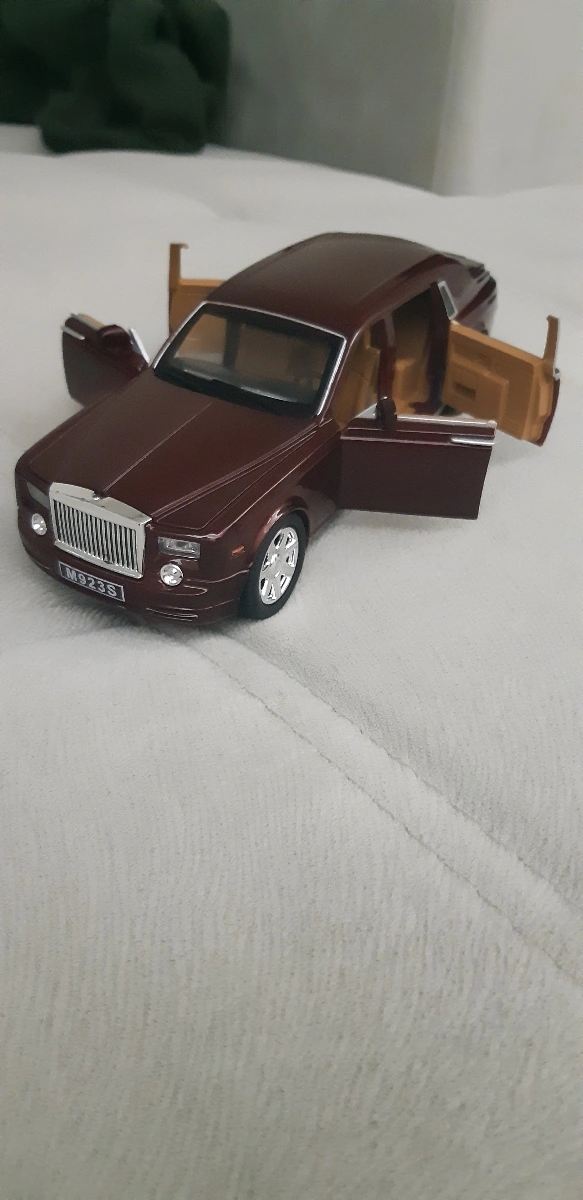 Металлическая модель машины Rolls-Royce Phantom (Ролс-Ройс Фантом) масштаба 1:24 имеет световые и звуковые эффекты. При нажатии на переднюю ось машинки загораются передние и задние фары, раздается звук работающего мотора. У машинки открываются все двери, капот и багажник. Детализированный салон.Машинка благодаря инерционному механизму, может ездить самостоятельно. Принцип действия "прижать, откатить, отпустить" знает любой ребенок. Такая игрушка поможет ребенку развить воображение, координацию, тактильные ощущения и мелкую моторику рук. Масштабная модель Rolls-Royce Phantom станет отличным подарком для детей и даже для автолюбителей, и займет достойное место в коллекции. В комплект входят 3 батарейки типа LR1130. Rolls-Royce Phantom — автомобиль представительского класса, производимый компанией Rolls-Royce Motor Cars, дочерней компанией BMW, в Чичестере (Западный Суссекс, Англия). Автомобиль сохранил детали предшественников - массивную вертикальную решётку радиатора со статуэткой «Дух экстаза» наверху. С 2007 года автомобиль выпускается также в бронированной версии (толщина брони - 97,1 мм). Знаменитая фигурка «Дух экстаза» при необходимости убирается в специальную нишу при помощи электромеханизма. В 2007 году компания Rolls-Royce представила кабриолет на базе модели Phantom VII. Компания Rolls-Royce обновляет модель раз в несколько лет. Последняя модель представлена в 2012. До этого машина была обновлена в 2009. Отличия между Фантомами 2009 и 2012 годов незначительные. Как в интерьере, так и в экстерьере можно отметить ноты архаичного стиля, особенно в панели приборов и торпедо автомобиля. В базовой комплектации в задние двери встраиваются выдвижные зонтики, которые можно достать и открыть. Более 70 % таких автомобилей делается под заказ. Phantom встречается и в варианте кузова типа «Лимузин». Почти все автомобили имеют задний привод (но под заказ иногда производили полноприводные версии). Задние двери автомобиля открываются против хода, что обеспечивает более удобный и эффектный выход из салона. Второй ряд сидений утоплен вглубь, так что у сидящих сзади людей голова находится на уровне задней стойки.