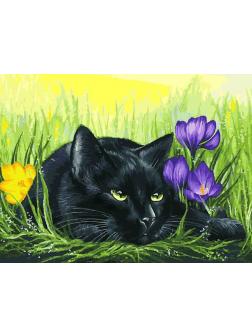Набор для творчества Белоснежка картина по номерам на холсте Кот и крокусы 30 на 40 см