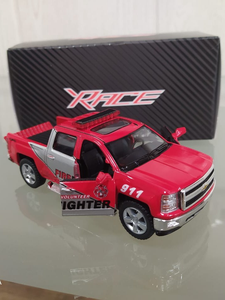 К восторгу малыша и взрослого, модель Chevrolet Silverado представлена сразу в двух видах. Так, ребенок сможет выбрать между полицейской и пожарной машинкой. Погрузиться с головой в игру позволит внешний вид машинки игрушки: обе модели оснащены мигалкой и открывающейся задней дверкой кузова. Машинка максимально приближена к своему прототипу благодаря порожкам под дверцами и детализированному салону. Изучить его можно, открыв дверки. В процессе игры малыш сможет тренировать мелкую моторику, координацию движений. А его воображение подскажет множество занимательных сюжетов. Игрушка имеет инерционный механизм. Поэтому играть с ней можно когда угодно. Лишь слегка толкните ее рукой, и ваш пожарный или полицейский уже поспешит на помощь. Машинка выполнена из ударопрочных, высококачественных материалов. Ее металлический корпус переживет любое столкновение. Несмотря на свой функционал, она небольшая и легкая. Возьмите ее с собой на прогулку, чтобы ребенок смог разделить веселье с друзьями.
