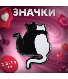 Значок "Коты" объятие, цвет чёрно-белый в чёрном металле