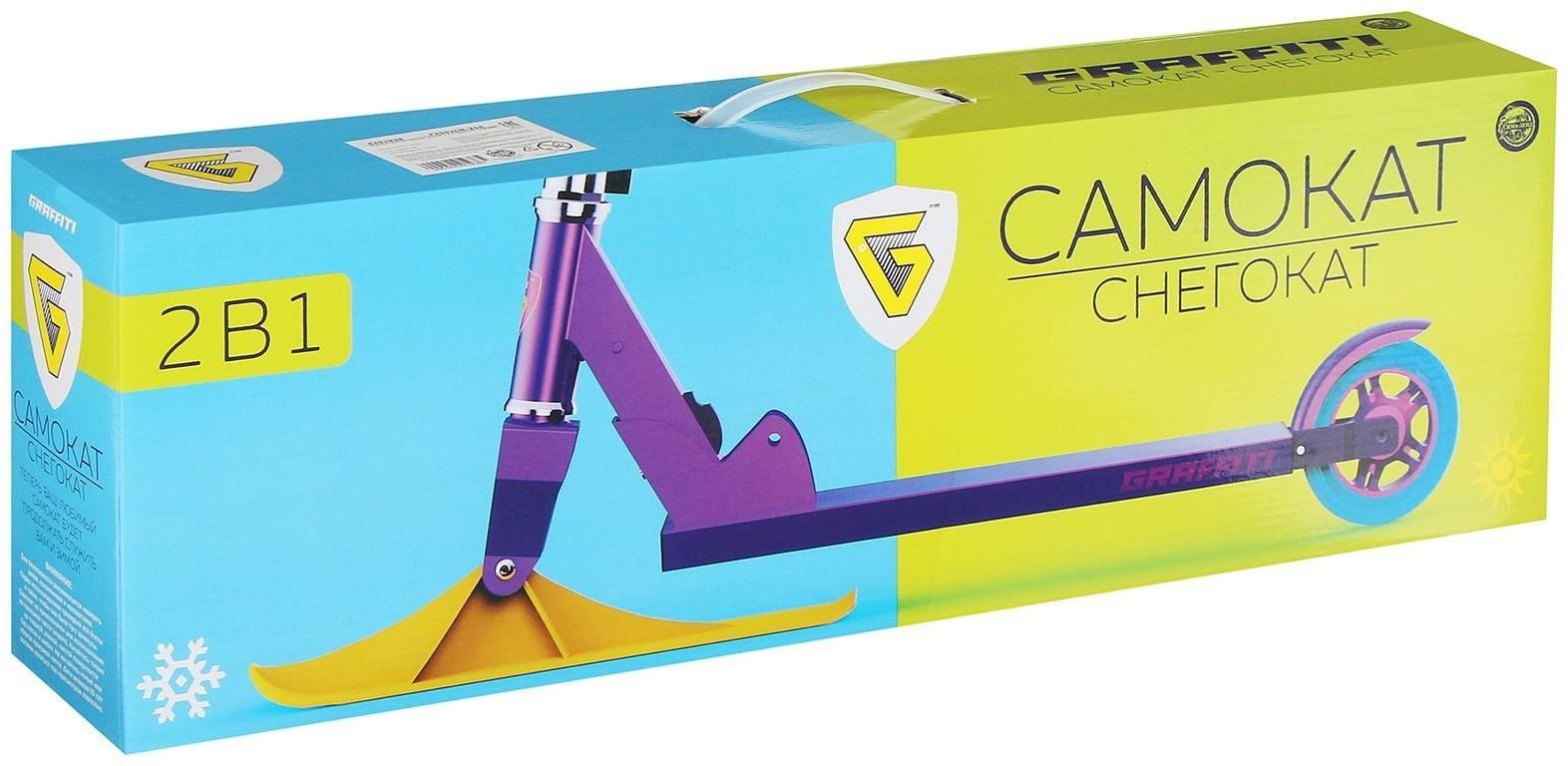 Детский самокат-снегокат — новая модель для летнего и зимнего активного отдыха. Конструкция представляет собой раму самоката, на которую установлены лыжи. Передняя лыжа управляется поворотом руля. Колёса можно установить в любой момент, для этого в комплекте есть всё необходимое.